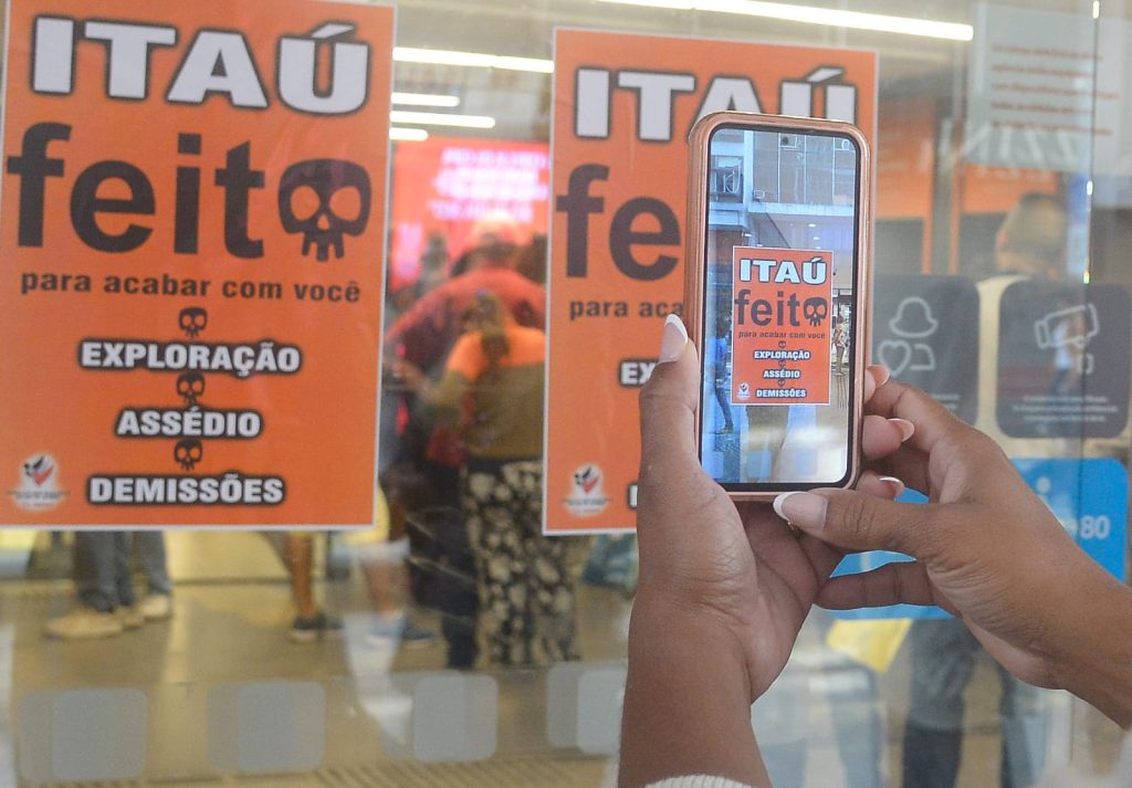 A categoria bancária participou, nesta terça-feira (8), do Dia Nacional de Luta dos Trabalhadores do Itaú contra o fechamento de agências, adoecimento mental e precarização do emprego no setor.
