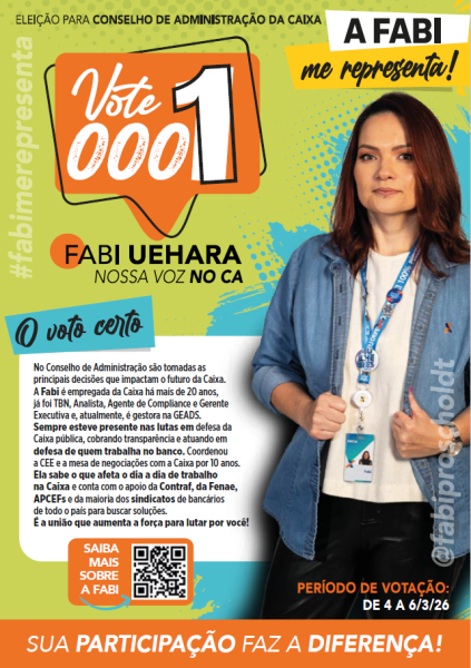 A votação acontece desta quarta-feira (4) até a sexta-feira (6) e a candidata Fabiana Uehara, a Fabi, conta com o apoio da Confederação Nacional dos Trabalhadores do Ramo Financeiro (Contraf-CUT).