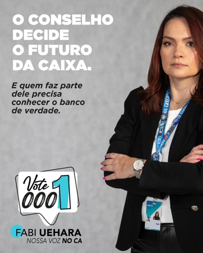 O apoio a Fabi Uehara tem por base o trabalho desenvolvido em seus 25 anos de trajetória na Caixa, passando por agência, área meio, gestão e junto às entidades.