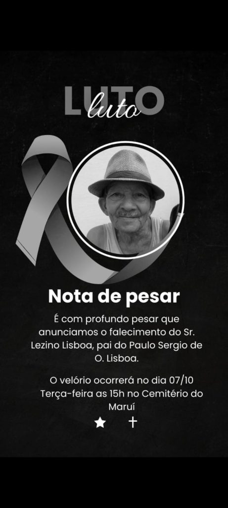 O Sindicato dos Bancários de Niterói e Regiões lamenta profundamente o falecimento do Sr. Lezino Lisboa, pai do diretor Paulo Sergio Lisboa.
