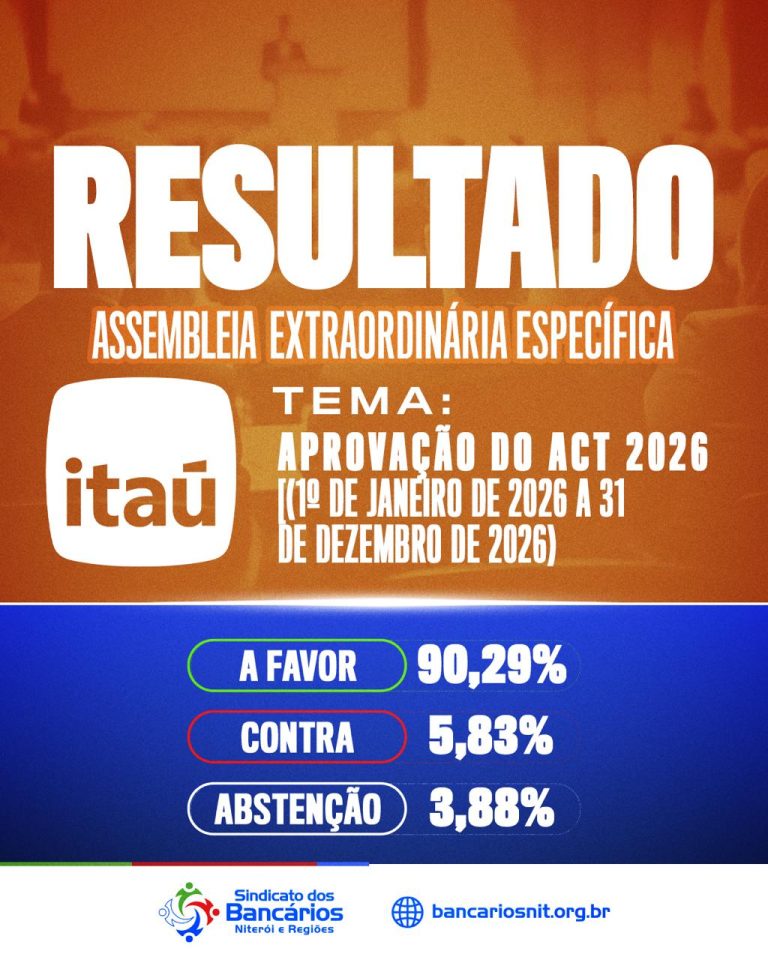 Bancários do Itaú aprovam ACT 2026 com 90,29% dos votos